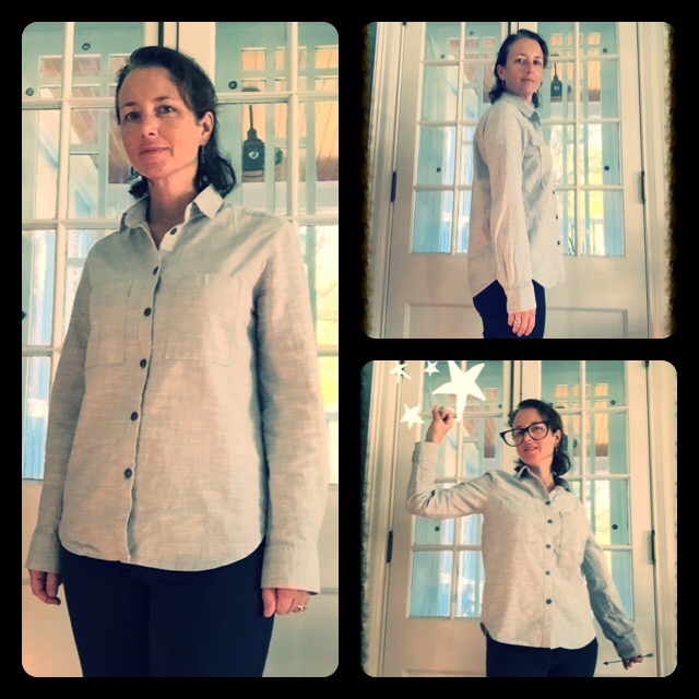 We made Archer shirts. Mine was nearly done when we left. I simply needed buttons — and though it took me two more weeks to sit down and sew them on, I finally did!